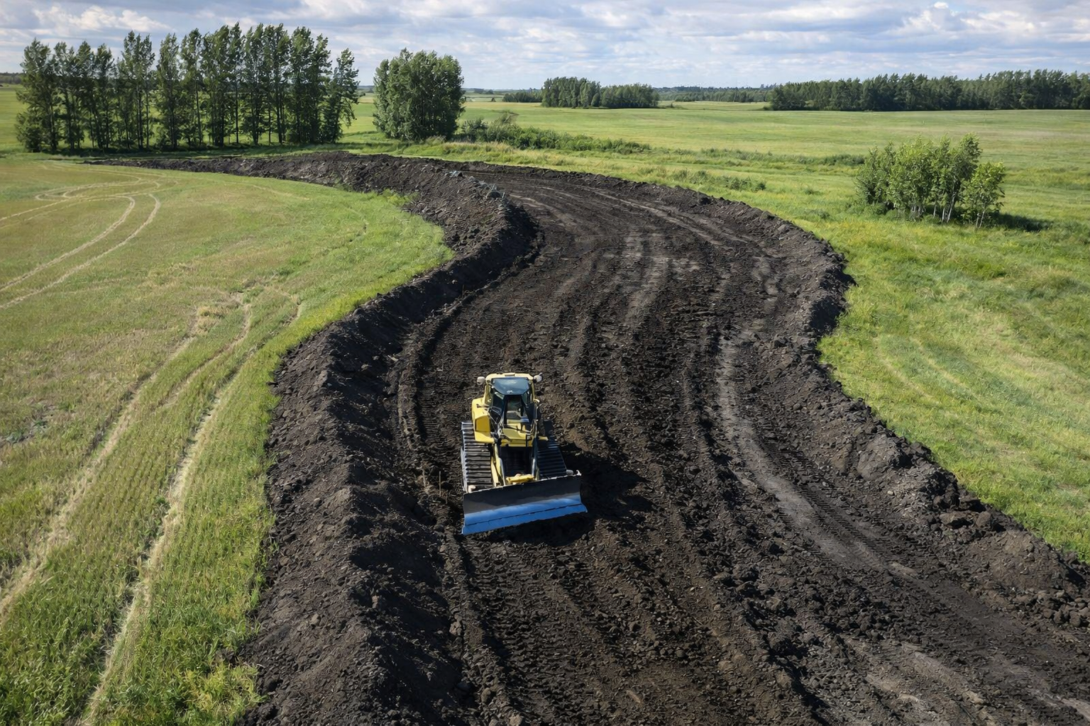 Alongside oilfield projects, we offer a wide range of excavation and contracting services for local farmers, acreage owners, and rural clients — from brush clearing, fence line removal, dugouts (built to Alberta Water Act Grant specs), basements and foundations, road building, and site prep — to certified Alberta private septic system design and installation.